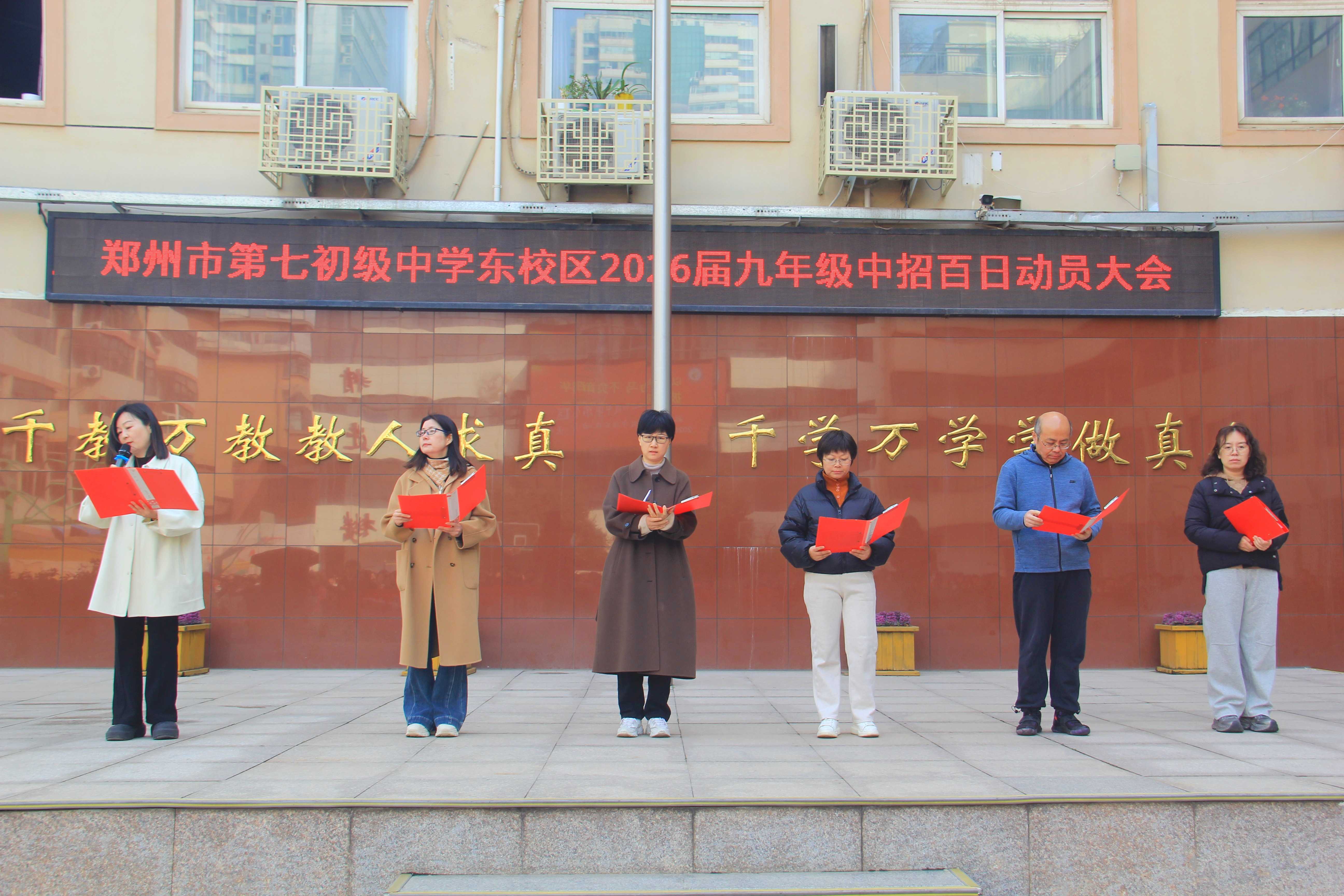 春风送暖,战鼓催征。为激发学子们的昂扬斗志,凝聚师生家校奋进合力,郑州市第七初级中学东校区于2026年3月16日隆重举行2026届九年级百日动员大会。学校领导、九年级全体师生及家长代表齐聚操场,共同见证这一振奋人心的时刻。